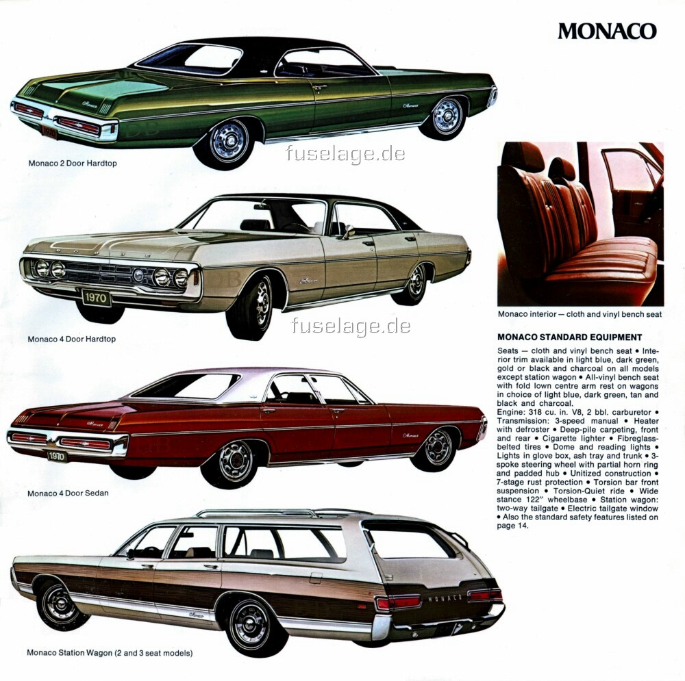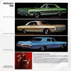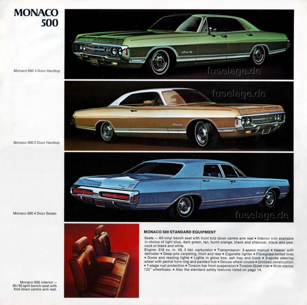 ![]() 1970 Dodge Monaco 500 four-door hardtop in green ![]() 1970 Dodge Monaco 500 four-door sedan |