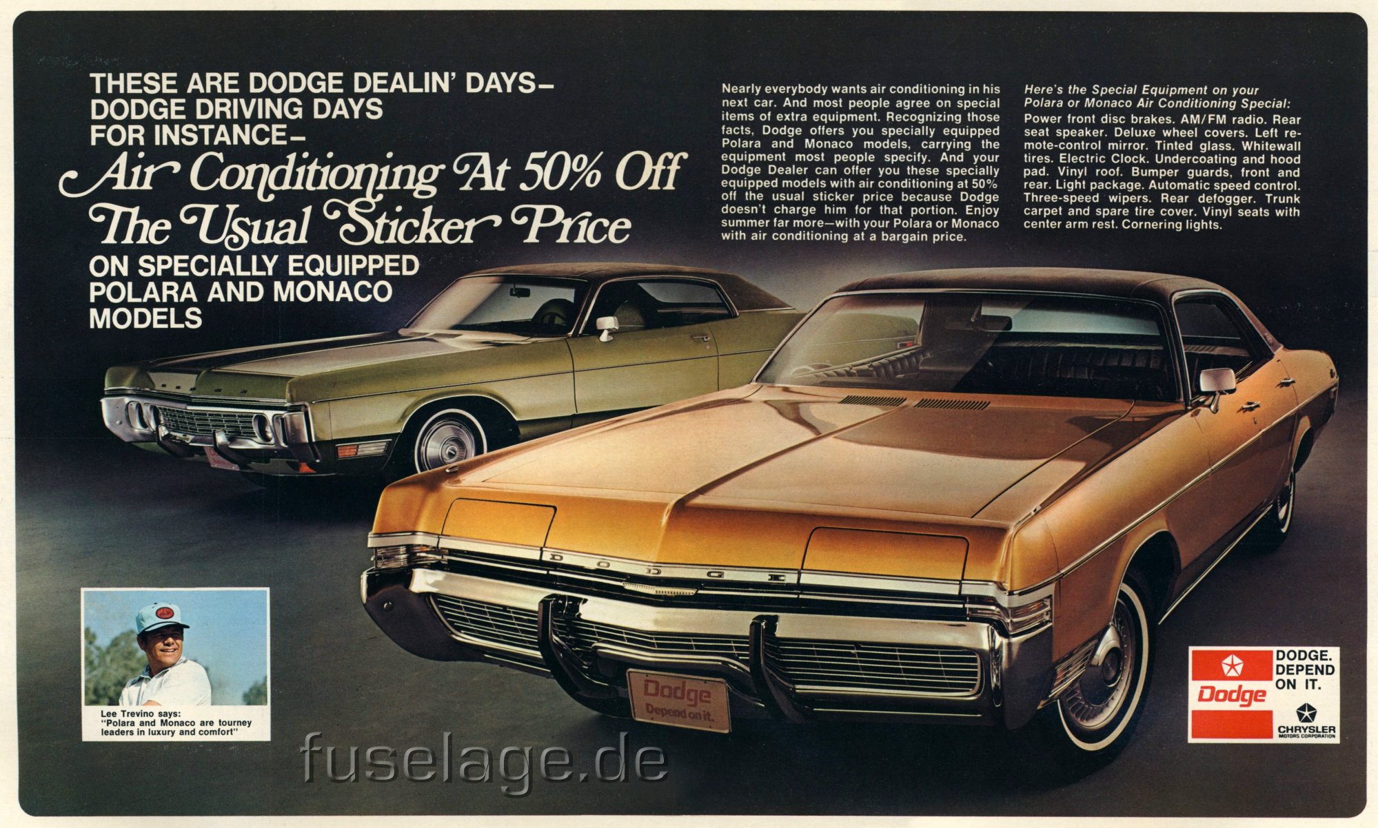 This ad was found in an issue of the »Dodge News« Magazine in spring of 1972. It advertises a 50 % discount for air-conditioning.
