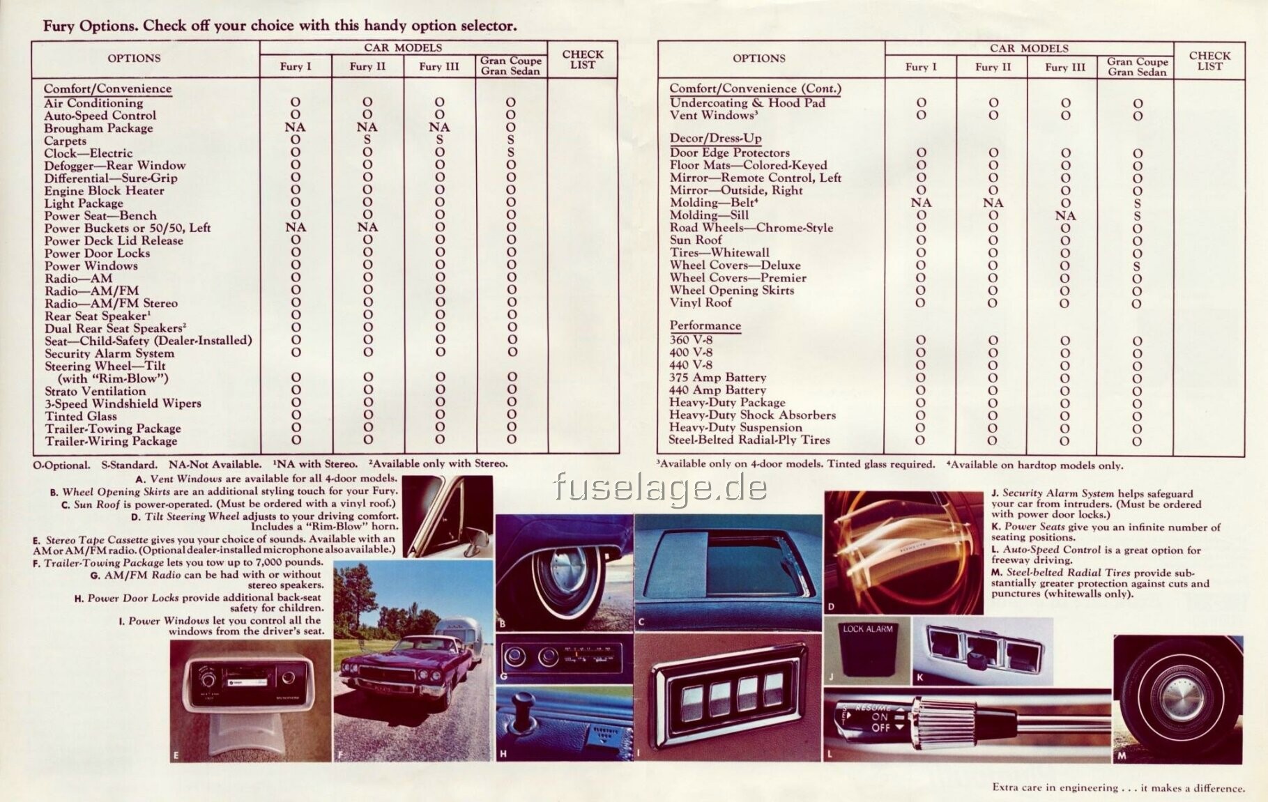 ![]() 1973 Plymouth Fury Seats ![]() 1973 Plymouth Fury innovations ![]() 1973 Plymouth Fury standard equipment ![]() 1973 Plymouth Fury optional equipment |